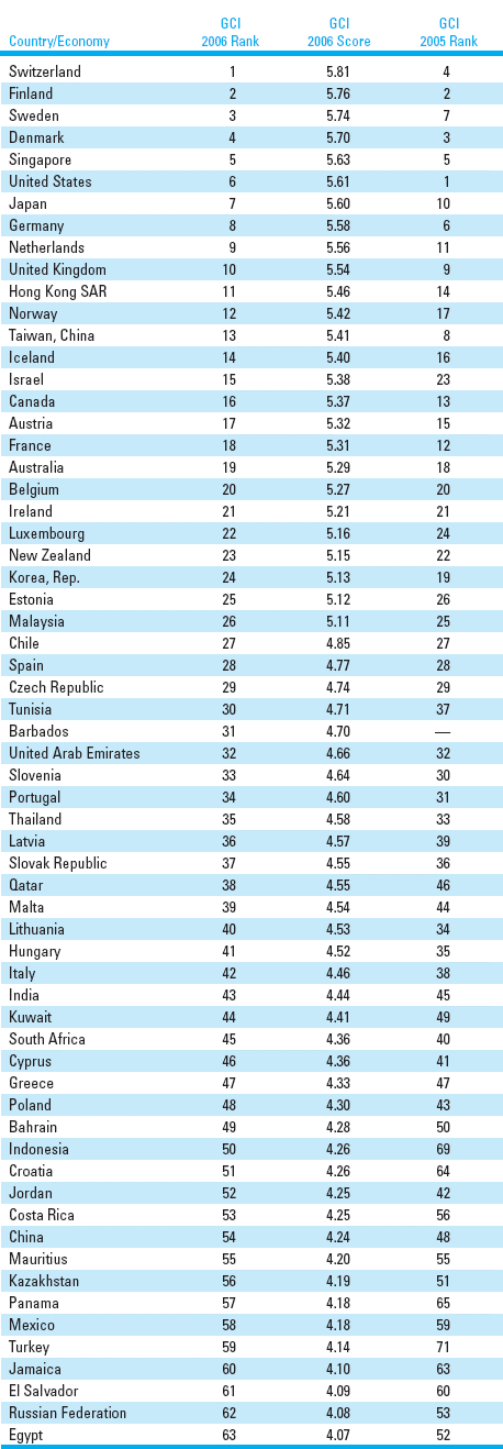 This year marks an important progression in The Global Competitiveness Report’s methodology, with the adoption of a new, more comprehensive, tool to assess countries’ competitiveness: the Global Competitiveness Index (GCI). The introduction of the Global Competitiveness Index is a logical extension of the World Economic Forum’s competitiveness work. Changes in the global economy and the increasing complexity which characterize the business environment have made it necessary to develop an instrument that captures a larger set of factors affecting the evolution of economic growth.