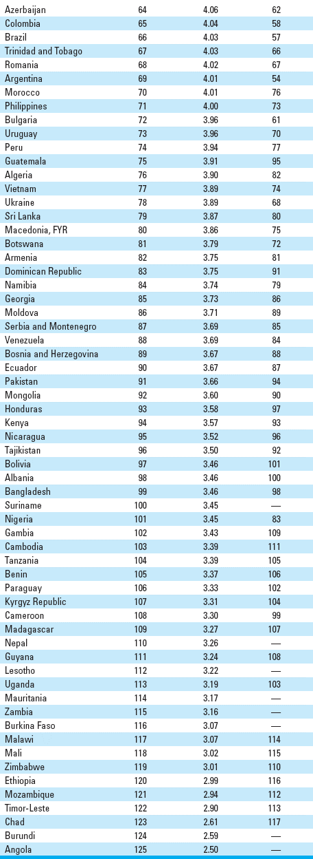 Within the Middle East and North Africa (MENA) region, the Gulf States continue to perform quite well in the overall GCI rankings. Tunisia ranked 30th, United Arab Emirates (UAE) ranked 32nd, Qatar 38th, Kuwait 44th, and Bahrain 49th. In many of the resource-rich countries, the availability of public finance appears – at least for now – not to have translated into improvements in human capital, which would play an important role in helping these economies that are highly dependent on oil and vulnerable to external shocks to diversify their economic base.