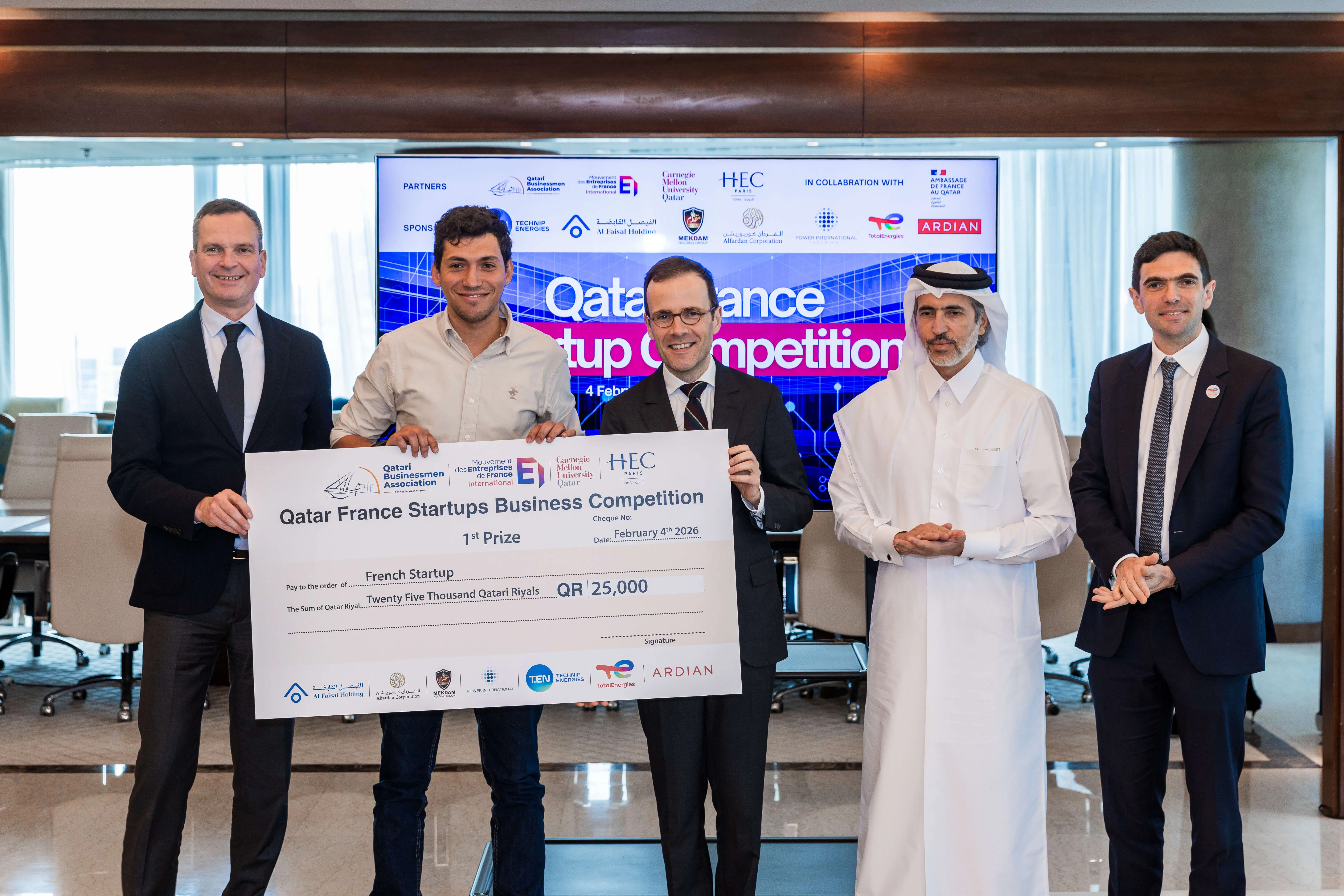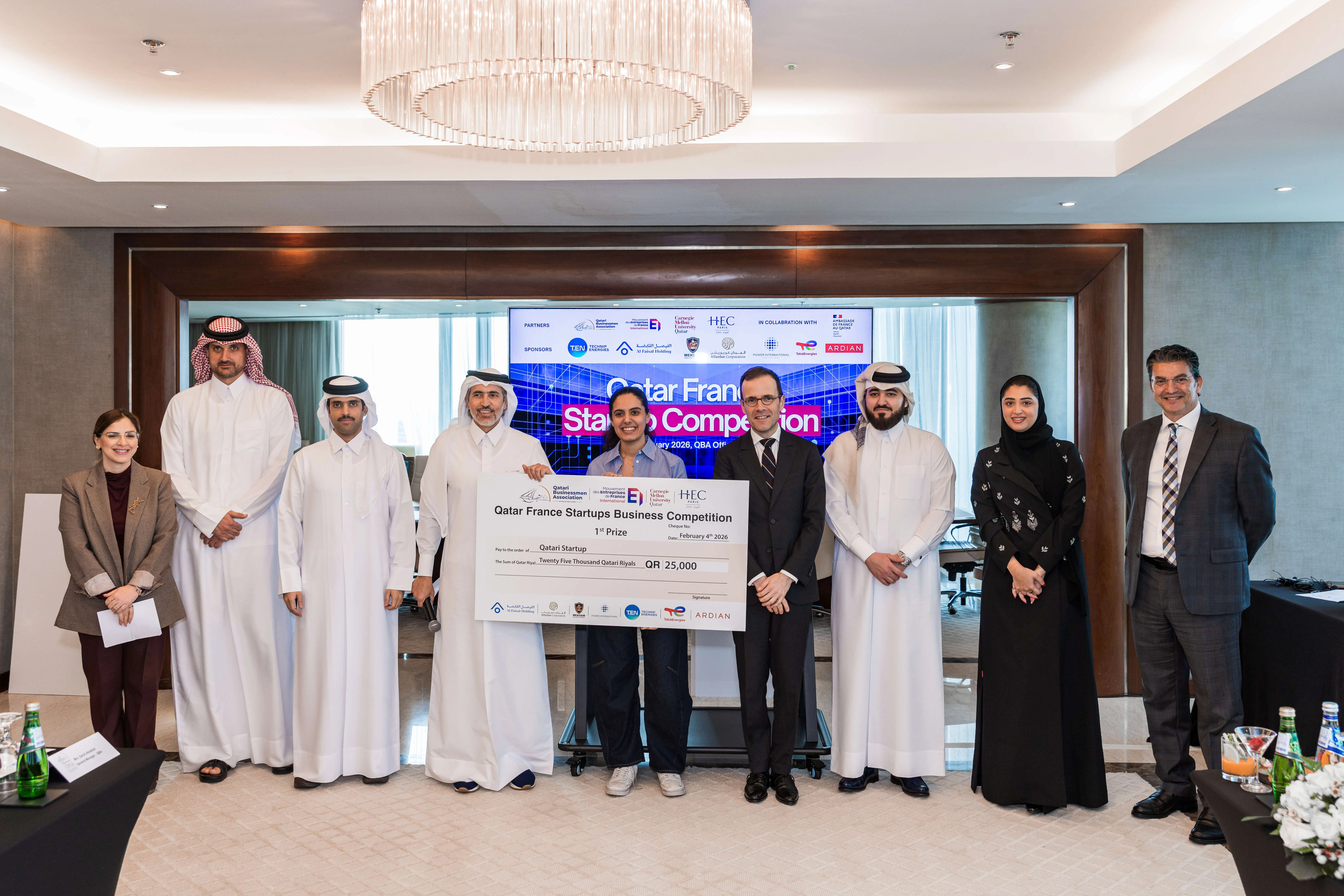 The participating companies presented their pitches and latest innovations before a judging panel that included a number of sponsoring entities from Qatar and France. From Qatar, the sponsors included: Al Faisal Holding, Alfardan Group, Mekdam Holding Group, and Power International Holding. From France, the sponsors included: Technip Energies, TotalEnergies, and Ardian. This competition represents the execution of the MOU that was signed between QBA and these entities on the sidelines of the official visit of His Highness Sheikh Tamim bin Hamad Al Thani, Amir of the State of Qatar, to Paris in 2024.